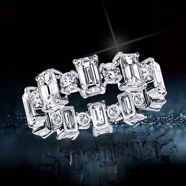 - Elegant mix: Alternating emerald and round cuts for unique sparkle.